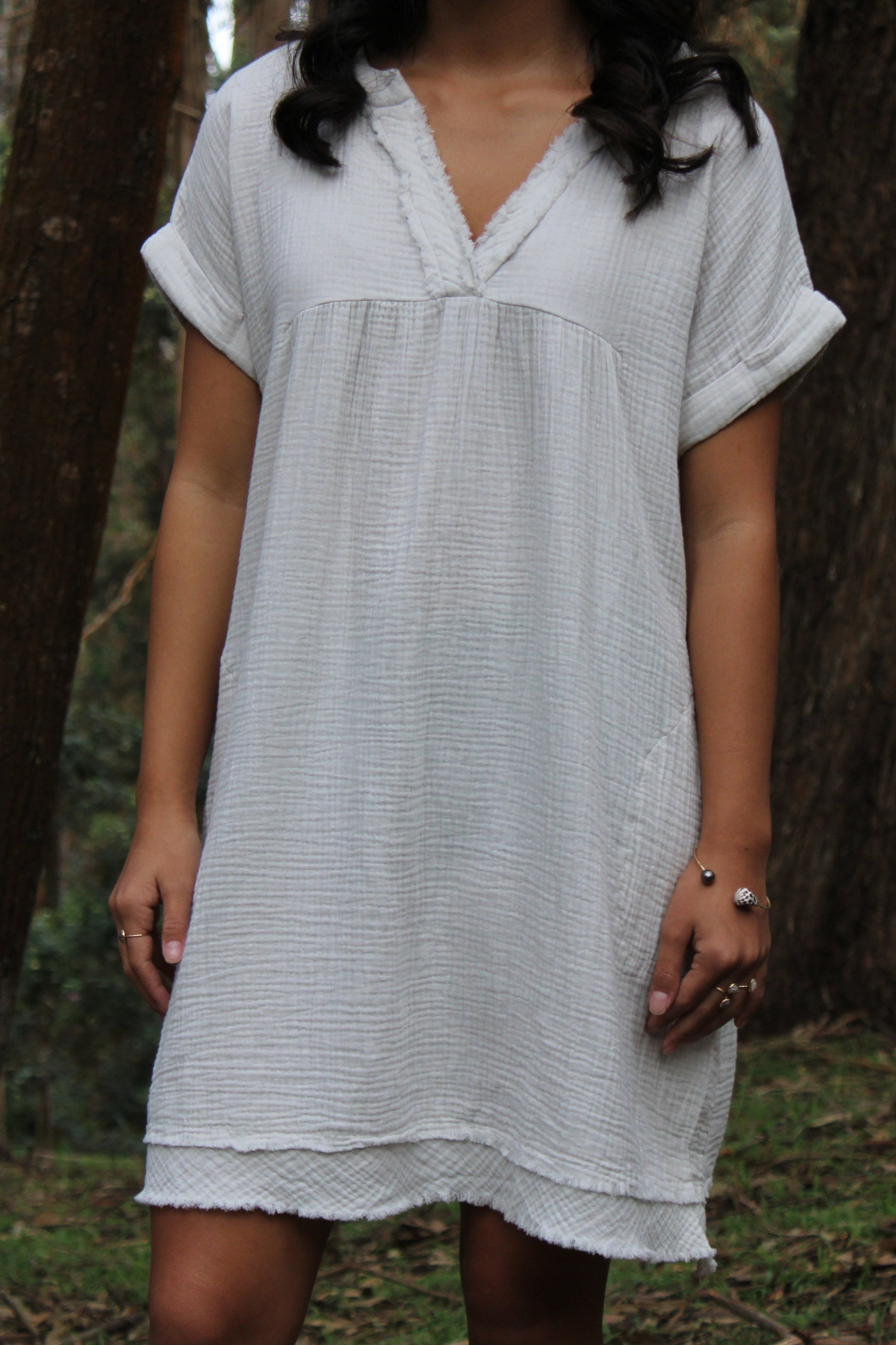 This Gauze V Neck Dress offers a comfortable and loose fit. Its lightweight fabric and versatile design make it a perfect fit for any occasion. Now with extended sizing this is the perfect dress for you.