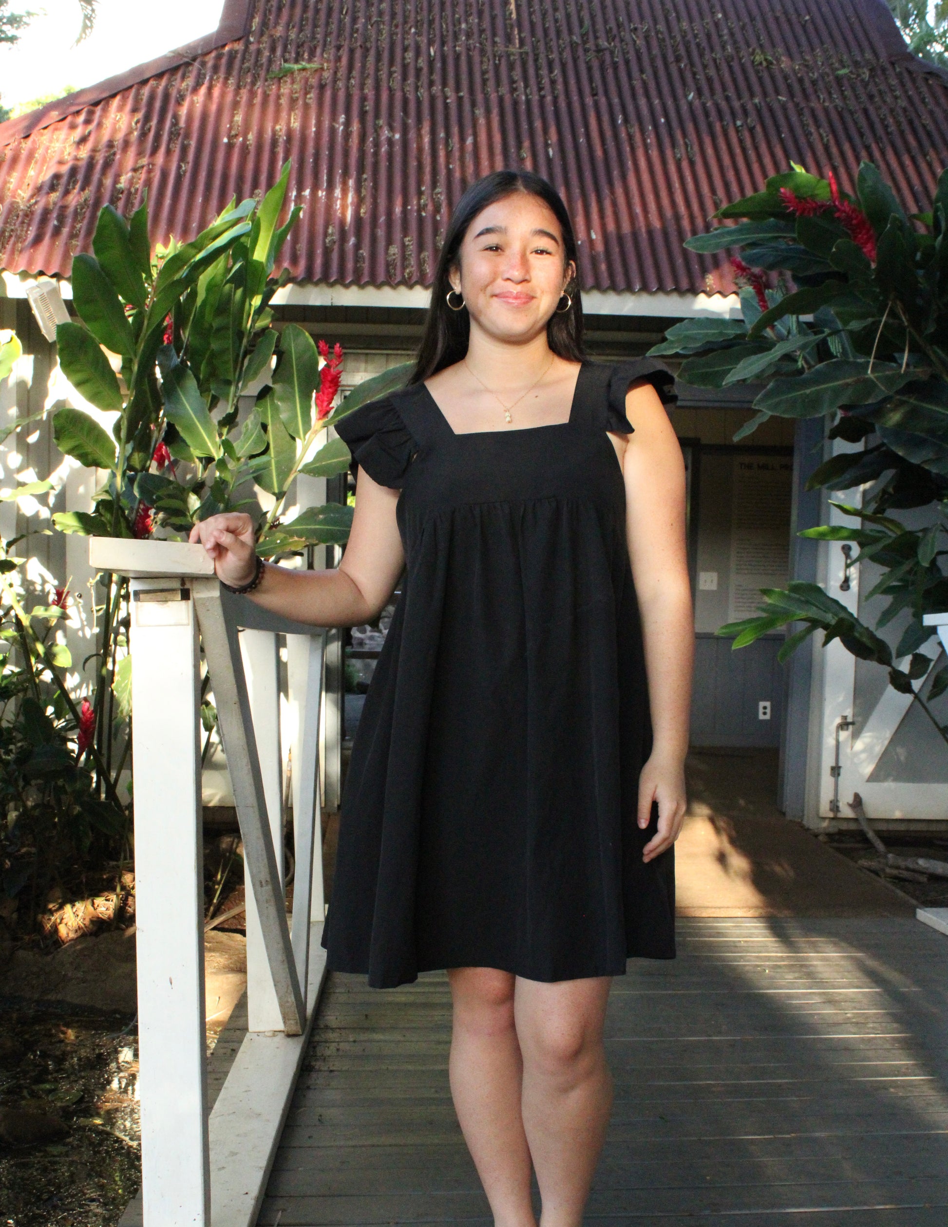 This trendy, loose fitted dress is perfect for all women. With stylish ruffle sleeves, it's a must-have for any fashion-forward wardrobe. Stay comfortable and fashionable all day long.